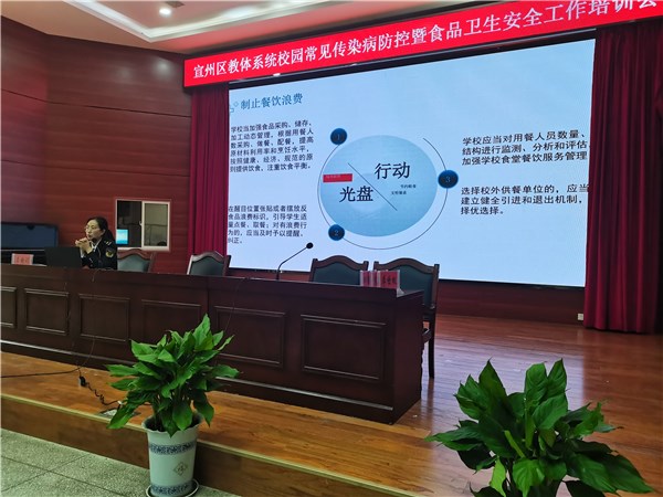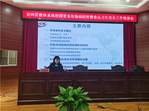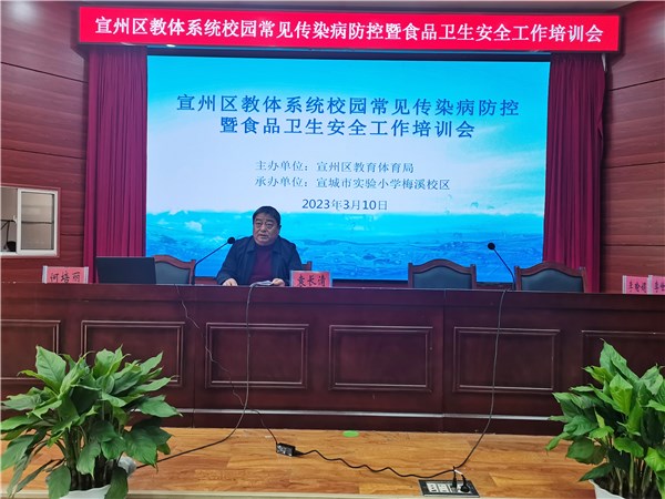 为稳妥做好校内各类传染病防控和学校食品安全风险, 3月10日,365bet欧洲版_365双试投注是什么_365bet足球盘宣州区教体局举行全区教体系统校园常见传染病防控暨食品安全工作培训会,区教体局分管科室,学校分管校长和食堂管理员等参加。会议邀请区市场监管局食品安全科副科长李瑜娟、疾控中心疾传科科长何培丽授课。