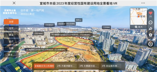 (图1.市本级2023年度经营性国有建设用地全景看地VR截图)