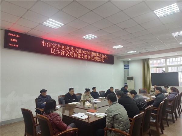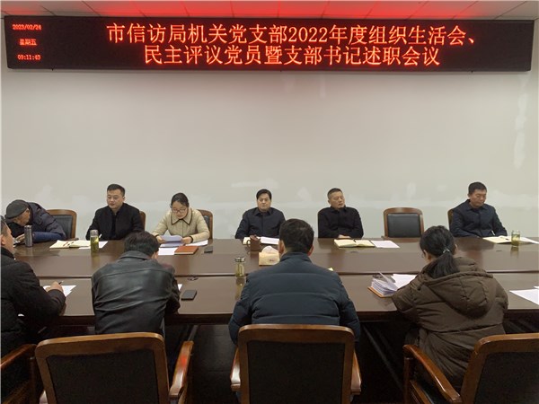 2月24日上午,市信访局机关党支部召开2022年度组织生活会、民主评议党员暨支部书记述职大会。市委副秘书长,市信访局党组书记刘初兴、市信访局党组副书记、局长范就成等全体领导班子成员以普通党员身份参加。会议由支部书记韩鑫主持。